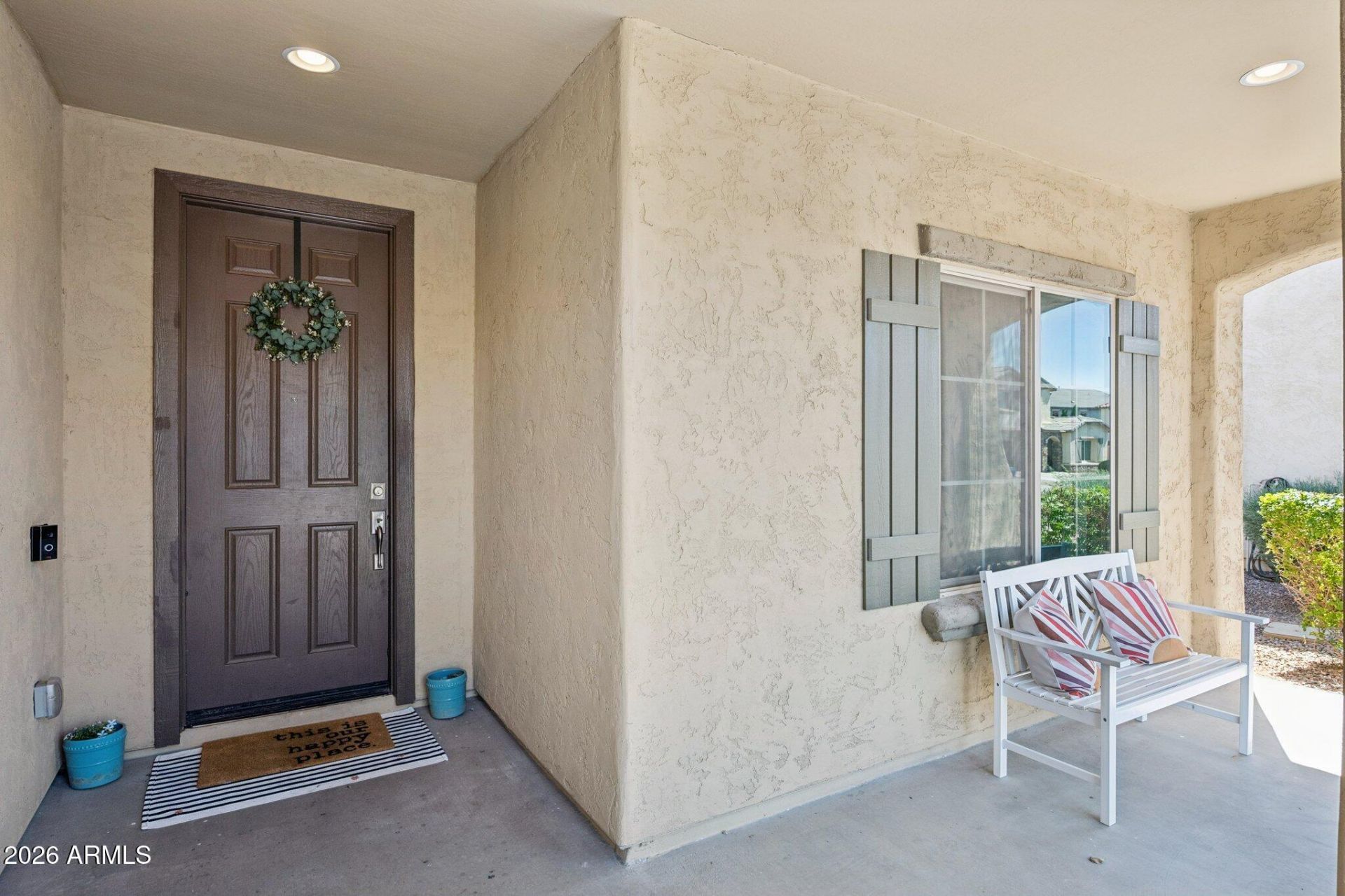 Turn the AC down and be the coolest house on the block with its energy-efficient, money-saving, fully paid solar system. This superbly maintained home in the trendy Bella Via community of Mesa (right down the street from Eastmark) features 4 bedrooms, 2 full baths, an open great room off the kitchen, and a spacious yet private sitting room off the foyer that could easily be used as a bonus room or large office/den. The primary bedroom features a walk-in closet with enough room for one or two dressers and plenty of hanging space. The primary bath includes a full-length shower and a vanity with double sinks. Open the full-length sliding glass doors and extend the great room to the fully covered patio, secure enough to mount an outdoor TV and large enough for your outdoor furniture. The GE Gas Oven/Stove and matching Microwave as well as the6 Stage Reverse Osmosis System and Water Softener were installed in 2024. The Electrolux Washer and Dryer as well as the Amana Refrigerator and the mounted TV on the back patio are included.