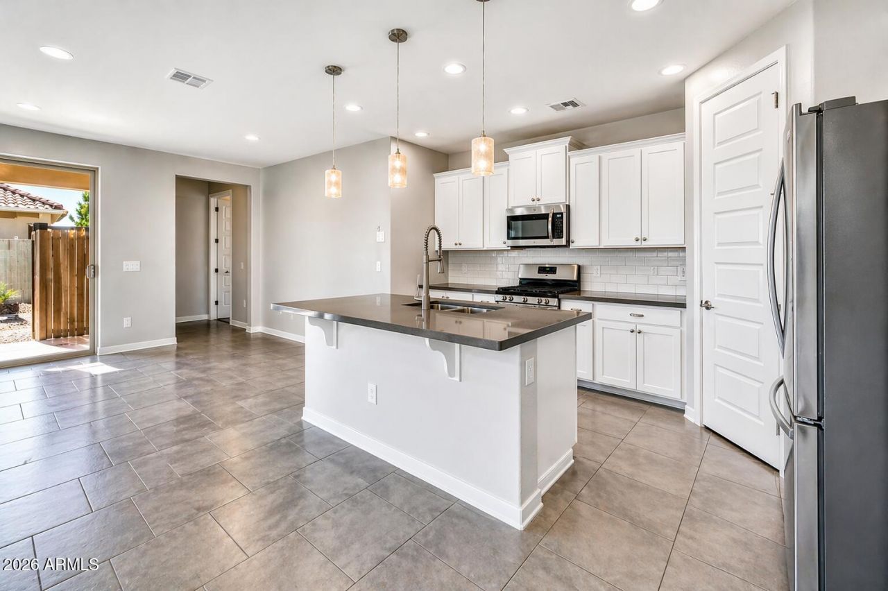 Beautifully maintained single-level home in a prime Litchfield Park location! Featuring newer flooring, updated interior paint, and in great condition throughout. The open-concept layout offers abundant natural light and seamless flow for everyday living and entertaining. The spacious primary suite boasts a HUGE master bathroom with an oversized walk-in shower. Recent upgrades include brand new easy-clean toilets and a freshly painted garage floor. Enjoy a low-maintenance backyard and a great community close to parks, shopping, dining, and freeways.