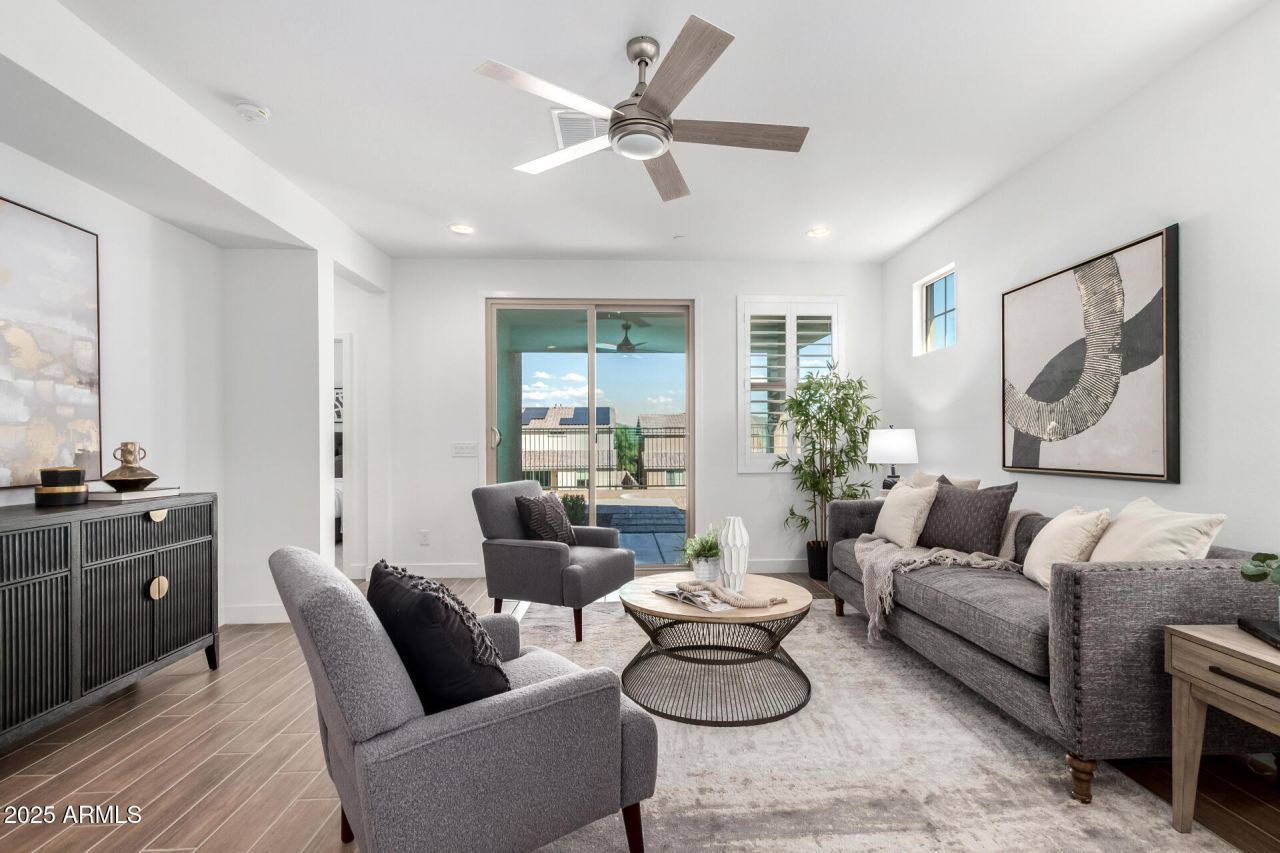 Welcome to 31853 N 124th Drive where luxury meets comfort and convenience! BETTER than the new builds AND with Builder Warranties still in place! Get ALL The Upgrades on this Beautiful, Single-Level Home in Mystic at Lake Pleasant. It is a true show stopper - and you can take advantage of the SPECIAL FINANCING were offering, too!This light and bright 3-bedroom + den (with closet), 2-bathroom home offers 1,761 sq ft of thoughtfully designed living space and a highly desirable split floor plan. Located in the sought-after community of Mystic at Lake Pleasant, this home features wood-look tile throughout, plush carpet in the bedrooms, wood shutters, and soaring 9 ft ceilings.The spacious great room flows seamlessly into the open-concept kitchen, complete with granite countertops, a breakfast bar, gray shaker cabinets, stainless steel appliances, gas cooktop, farmhouse sink, and motion-sensor faucet - perfect for everyday living and entertaining. The primary suite includes a large walk-in closet, private toilet room, soaking garden tub, and a separate walk-in shower.Additional highlights include an extended garage, already DONE low-maintenance front and backyard landscaping, paver patio, synthetic turf, and a view fence overlooking a walking trail and absolutely beautiful mountain views.Enjoy all the amenities Mystic has to offers, including a resort-style infinity pool, community gathering spaces, and a childrens play area.This home truly has it all: luxury, comfort, and convenience in one of Peorias most desirable neighborhoods! Dont wait to see this beauty!