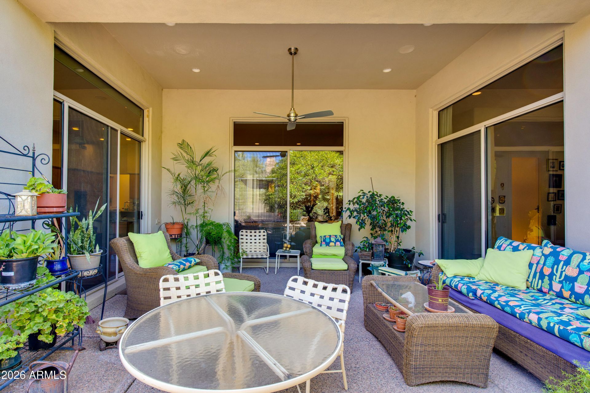 Located within the guard-gated Biltmore Hillside Villas community, this single-level residence offers a simplified, lock-and-leave lifestyle. With no interior steps, this 3 bed, 2.5 bath home features soaring ceilings throughout, enhancing the light-filled, open feel of the space. A thoughtfully designed split floor plan provides ideal separation, with a spacious primary suite and additional guest bedrooms that are perfectly suited for visitors, or a home office. Interior finishes include wood flooring, custom maple cabinetry, professionally designed lighting and drapery, and niches for art displays. The kitchen is complemented by a butlers pantry with beverage center and abundant storage throughout. Step outside to a private patio surrounded by natural vegetation and citrus trees. This light-filled home is move-in ready or presents a wonderful canvas to tailor to your own vision. Enjoy close proximity to the best of the Biltmore, including premier golf, hiking, dining, shopping, and the iconic Biltmore Hotel and resort-style amenities.