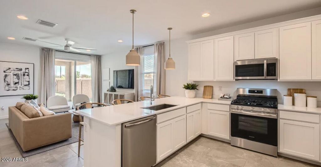 Seller is offering a credit toward a rate buydown and closing costs with our preferred lender ask us how you can save thousands over the life of your loan! Western Garden is a brand-new master-planned community located in Phoenix, AZ. Residents here enjoy close proximity to a variety of nearby local attractions, like State Farm Stadium, Westgate Entertainment District & Wildlife World Zoo as well as exclusive onsite amenities coming soon such as a gorgeous swimming pool, pickleball courts, playgrounds and more! This home comes fully equipped with all brand-new stainless steel kitchen appliances and is complete with 8X40 tile flooring, modern quartz countertops and stylish maple slate cabinetry. Photos are of a model home. A copy of the public report is available on the ADREs website.